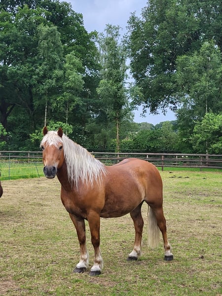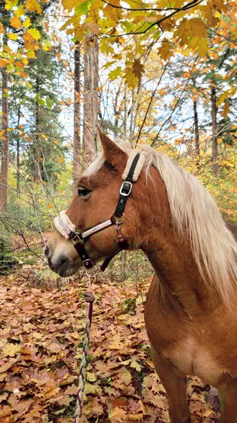 With a heavy heart, I am offering my Haflinger gelding Jores, as unfortunately we are no longer a good match. Jores is a 10-year-old gelding approximately 1.45 meters tall. He is a traditional type Haflinger, possibly with a touch of draft horse in his blood (registered with the ICS). He has a beautiful dark coat and a strong, compact build. Jores is a sensitive and somewhat insecure horse who tends to bottle up his emotions and can quickly enter a “freeze” mode in stressful situations. I bought him over a year ago as a green but well-trained horse. During that time, he has been out in the forest and ridden in dressage. He has also reportedly worked as a carriage horse in the past. In April, I unfortunately had a hard fall from him (with lasting damage to my shoulder), which affected us both mentally. Despite this, he continued to be ridden afterward, but he became increasingly tense. Therefore, he was first fully handled from the ground. He has worked as a project horse with a student of Natural Horsemanship. This involved groundwork, free longeing, and long lining. The plan was to gradually reintroduce riding, but due to my injury and the associated uncertainty, I feel I can no longer provide him with what he needs (a confident person he can rely on). He is very perceptive of my tension. In addition, Jores has experience working as a herd horse; both as a lead horse alongside a ridden horse and under saddle with a herd horse nearby. He has also participated in various coaching sessions. Notably, he tends to avoid extroverted, dominant personalities but seeks contact with more introverted and calm individuals. He is honest, gentle in his interactions, and eager to work when there is something to do; he stands at the front. Jores feels his best when he is comfortable in his own skin (a few kilos lighter) and is physically and mentally challenged. He needs variety and clear guidance. Recently, we have started some light liberty dressage, which he clearly enjoys. He is eager to think along, quickly picks up new exercises, and is very curious. In the herd, he gets along easily with other horses. He loads calmly into the trailer and is taken out into the woods weekly on a lead with a group. Going out alone also works well, provided the handler is confident. I am looking for a confident, calm owner for him. Riding should not be the primary goal; trust, connection, and clarity are paramount. From there, it can be considered whether riding might be suitable again in the future. What I consider important: * A stable, self-assured handler I wish for him to find a place where he can settle, continue to grow in confidence, and be appreciated for who he is. Please feel free to send a private message for more information.