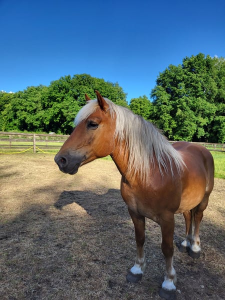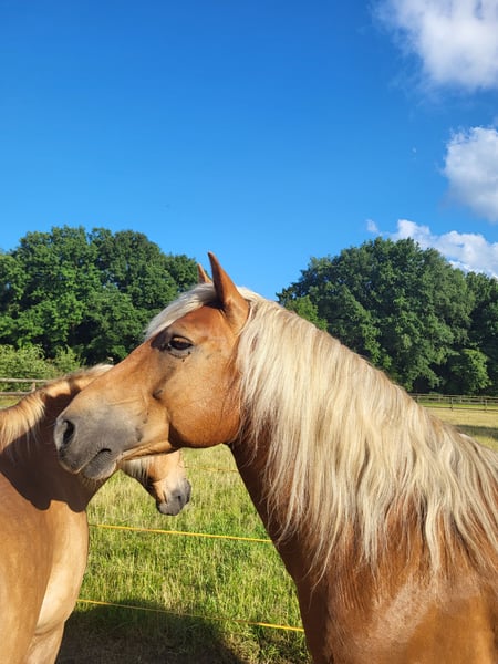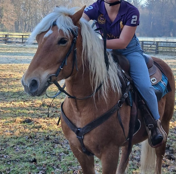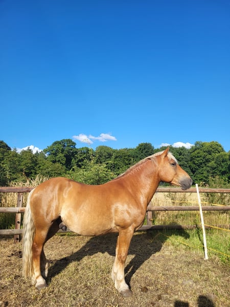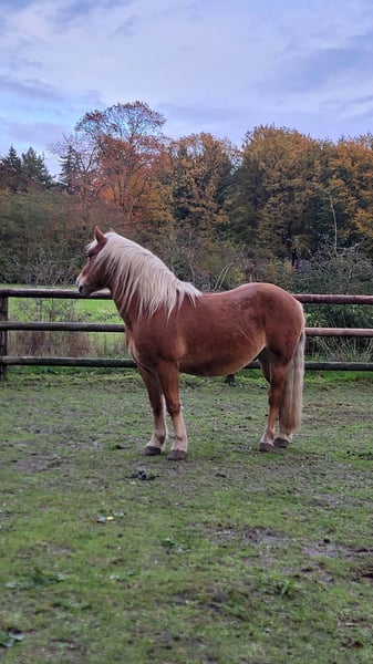 Mit schwerem Herzen biete ich meinen Haflinger-Wallach Jores an, da wir leider keine passende Verbindung mehr finden. Jores ist ein 10-jähriger Wallach von etwa 1,45 m Größe. Er ist ein klassischer Haflinger-Typ, möglicherweise mit einem Hauch von Zugpferd im Blut (eingetragen beim ICS). Er besitzt ein schönes dunkles Fell und eine kräftige, kompakte Konstitution. Jores ist ein sensibles und unsicheres Pferd, das viel aufstaut und in stressigen Situationen schnell in die „Freeze“-Position verfallen kann. Vor über einem Jahr habe ich ihn als grünes, aber eingerittenes Pferd gekauft. In dieser Zeit war er unter anderem im Wald unterwegs und wurde dressurmäßig gearbeitet. Er soll auch früher vor der Kutsche gezogen haben, so die Aussage. Im April hatte ich leider einen schweren Sturz von ihm, bei dem meine Schulter dauerhaft verletzt wurde, was uns beiden mental zugesetzt hat. Trotz allem ist er danach noch unter dem Sattel gegangen, aber er zeigte dabei viel Anspannung. Deshalb wurde er zunächst vollständig vom Boden aus gearbeitet. Er hat als Projektpferd bei einer Studentin der Ausbildung zum Natural Horsemanship mitgemacht. Dabei wurde an Bodenarbeit, Losgelassenheit und Longieren gearbeitet. Der Plan war, ihn anschließend wieder ruhig unter dem Sattel aufzubauen, doch durch meine Verletzung und die damit verbundenen Unsicherheiten fühle ich, dass ich ihm nicht mehr die Sicherheit geben kann, die er braucht – eine selbstbewusste Bezugsperson, auf die er bauen kann. Er spürt meine Anspannung sehr genau. Zusätzlich hat Jores Erfahrung als Handpferd gesammelt, sowohl als Begleitpferd beim Reiten eines anderen Pferdes als auch selbst unter dem Sattel mit einem Handpferd an seiner Seite. Außerdem hat Jores an verschiedenen Coaching-Sitzungen teilgenommen. Dabei fällt auf, dass er extravertierte, dominante Persönlichkeiten eher meidet, aber gerade bei introvertierten und ruhigen Menschen Kontakt sucht. Er ist ehrlich, im Umgang sanft und arbeitet gerne, wenn etwas zu tun ist – dann ist er vorne mit dabei. Jores fühlt sich am wohlsten, wenn er sich gut in seinem Körper fühlt (ein paar Kilo leichter ist) und sowohl körperlich als auch mental gefordert wird. Er braucht Abwechslung und klare Führung. In letzter Zeit haben wir mit leichter Freiarbeit begonnen, was ihm sichtbar Spaß macht. Er denkt gerne mit, lernt neue Übungen schnell und ist sehr lernwillig. In der Herde kommt er gut mit anderen Pferden zurecht. Er geht ruhig in den Hänger und unternimmt wöchentlich mit einer Gruppe einen Spaziergang im Wald. Allein unterwegs sein klappt ebenfalls, vorausgesetzt, die Begleitperson ist selbstsicher. Ich suche für ihn einen sicheren, ruhigen Besitzer. Reiten sollte kein vorrangiges Ziel sein; Vertrauen, Verbindung und Klarheit stehen im Vordergrund. Von dort aus kann natürlich geprüft werden, ob das Reiten in Zukunft wieder passend ist. Was mir wichtig ist: * Eine stabile, selbstbewusste Begleitperson Ich wünsche ihm einen Ort, an dem er ankommen, weiter Vertrauen fassen und geschätzt werden kann – so, wie er ist. Bei Interesse sende gern eine private Nachricht für weitere Informationen.