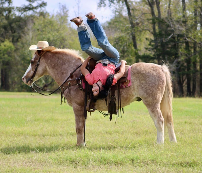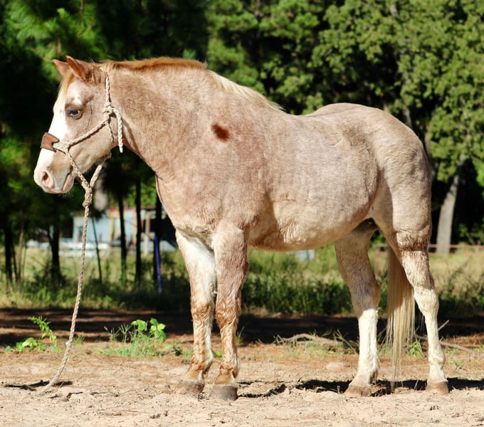 ONLINE AUCTION Place your bids at www.PlatinumEquineAuction.com Starting Bid $3500 Auction ends November 24th, 2024 Need a new saddle? Check out White Rock Saddles on our website or Facebook! How about this neat halflinger cross gelding! Scooby is 14 years old and stands 14.1 hands tall. He has very unique coloring which gets him noticed everywhere you take him. Scooby has been a family trail horse. He is traffic safe, gun safe, loves water and to go swimming in the summer. Scooby will cross any obstacle that comes across his path without second thought! Scooby has so much personality and he will hunt you down in the pasture for scratches (and snacks). Scooby has carried flags and done lots of playdays. Scooby has no bad habits, he is easy to catch, groom, bathe, trim, load. He will stand tied without issue. Scooby saddles and takes the bridle well but will also ride bareback in a halter! Scooby has a one hand neck rein and knows the word “WOAH”. He will lope right out from a walk. His little jog is so smooth you could sit it all day. He will side pass both ways. He is broke fancy like a ranch horse but is gentle enough for your entire family to enjoy. Scooby will be a welcome addition to anyone’s barn. He is UTD on shots, coggins, deworming, and trimming. If you would like more information about him please call Alicia Darling 903-840-8010. Scooby is located in Canton Texas but we work with haulers that go all over the USA. ONLINE AUCTION Place your bids at www.PlatinumEquineAuction.com Starting Bid $3500 Auction ends November 24th, 2024 Need a new saddle? Check out White Rock Saddles on our website or Facebook!