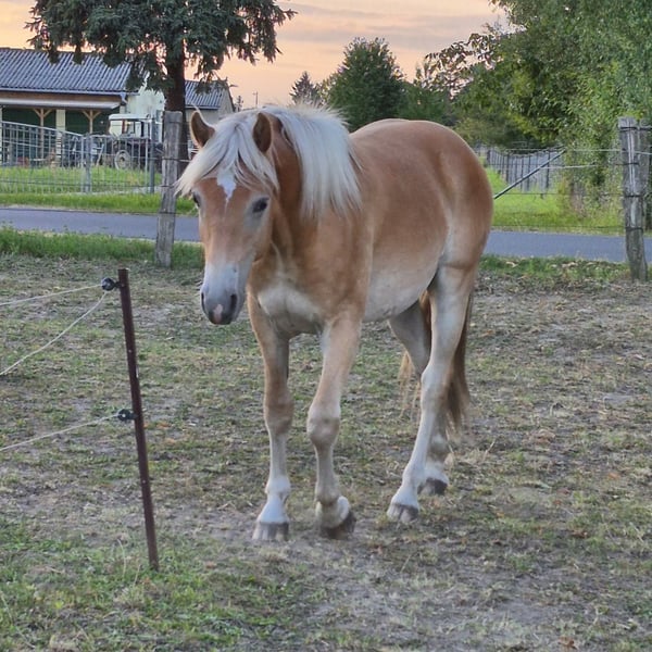 Mailo ist ein im Februar 2024 geborener Haflingerwallach. Er stammt ab von Liz Medicus aus dem Ponypark Padenstedt. Mütterlicherseits geht er auf den Solero zurück. Er ist ein sehr menschenbezogenes, umgängliches liebes Pferd, das gefallen möchte. Mailo hat sehr gute GGA, kennt das Fohlen ABC,und ist schon einige Male Hänger gefahren. Er ist selbstverständlich grundimmunisiert, regelmäßig entwurmt und gesund. Eine AKU von Juli liegt vor. Er wird mal ein Endmaß von ca 1,54 erreichen. Mailo hat eine sehr gutes kräftiges Fundament, wobei er trotzdem im sportlichen Typ steht. Ein Paß mit Abstammungsnachweis und Eigentumsurkunde liegen selbstverständlich vor.