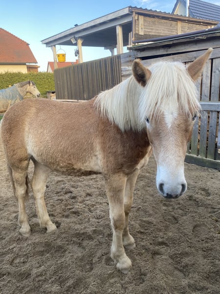 Hiermit verkaufe ich mein 1 Jährigen Haflinger Wallach, Buffalo Bill. Buffi wurde am 31.03.2025 geboren, aus einer Verbandsprämienstute** von Aristorin, die ihre leistungsprüfung im fahren als Siegerin bestreiten konnte. Sein Papa ist der Elitehengst Bugatti. Buffi war Teilnehmer am Fohlenchampionat. Ein Fohlen mit überzeugenden Seitenbild, Gebäude und Ausdruck, mit Bewegungsabläufen, die keine Wünsche offen lassen. Buffi ist dem Menschen steht’s zugewandt und liebt es zu kuscheln. Er beherrscht das Fohlen-ABC und war schon beim Hufschmied. Außerdem mag er die Bodenarbeit, die er fleißig mitmacht. Er möchte einen immer gefallen. Er steht bei mir in einem Offenstall mit einen anderen Wallach. Buffi ist sehr sozial. Eckdaten: * Buffalo Bill * Geboren: 31.03.2025 * Elitehengst Bugatti x Verbandsprämienstute** von Aristorin * Kennt Fohlen-ABC, Hufschmied, Tierarzt, Hund, Autos, Kinder, Bodenarbeit * kennt Alltagsgeräusche durch spazieren gehen * Menschenbezogen, liebt kuscheln, treue Seele * Regelmäßig entwurmt und geimpft * Aktuelles Stockmaß: 1,37 cm Erwartetest Endstockmaß ist über 1,50 cm