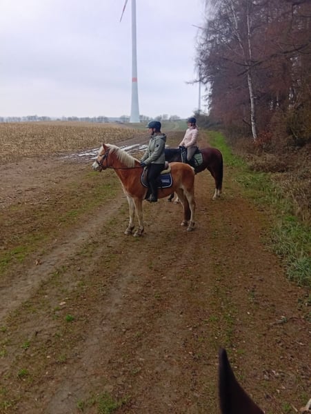 Wir verkaufen unseren fast 4 jährigen Haflinger Wallach. Aktuell ist er ca. vorne 145cm groß, hinten um die 148cm. Also noch etwas unförmig. Seine Eltern sind beide eher größer, deshalb hatten wir die Hoffnung dass auch eher mindestens das Endmaß erreichen wird. Er hat komplette Papiere aus dem Tirol sein Vater ist liz. Manhattan. Aktuell ist er schon leicht angeritten. Er kennt es mit Reiter im Schritt, Trab und Galopp. Im Gelände war jetzt auch schon und geht alle drei GGA, wobei natürlich die Kraft noch fehlt um den Galopp halten zu können. Er ist schon jetzt absolut entspannt und es erschreckt ihn fast nix. Für alle Sparten geeignet. Mit weiterer Ausbildung steigt der Preis. Bei ernsthaften Interesse gerne melden. Dann gibt es auch ein Video.