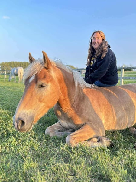 Haflinger Fohlen zu verkaufen – Stardust von ’t Vossenhol (3 Jahre) (rechts im Wagen) und Shadow von 't Vossenhol (3 Jahre) Geboren: 20.06.2022 Stockmaß: 1,51 m und 1,47 m • Vater: Liz Spielberg • Ausbildung & Erfahrung: • Unter dem Sattel geritten, sowohl mit als auch auf dem Halfter. Beide haben bereits ein wenig Basis gesprungen, aber aufgrund des Alters nicht hoch. • Auch unser Hindernisparcours ist ihnen bekannt. • Beide waren schon bei Ausritten und auf Wandertouren dabei. • Brav beim Schmied und stets ordentlich geimpft. • Laufen zusammen im Doppelgespann vor der Kutsche. • Charakter: Anhänglich, lieb, ruhig und willig – ein zuverlässiger Partner für verschiedene Disziplinen. Vielseitige junge Haflinger, die bereit sind, gemeinsam weiter zu wachsen, sowohl unter dem Sattel als auch vor der Kutsche. Nicht geeignet für Anfängerreiter oder -fahrer aufgrund des Alters. Interesse? Bitte kontaktieren Sie uns für weitere Informationen oder einen Besichtigungstermin. Gerne auch per WhatsApp für mehr Videos unter dem Sattel oder im Wagen. Sie sind von uns selbst gezüchtet, daher ist die gesamte Geschichte bekannt. Höhere Preisklasse 13.000 für beide zusammen 0495888528