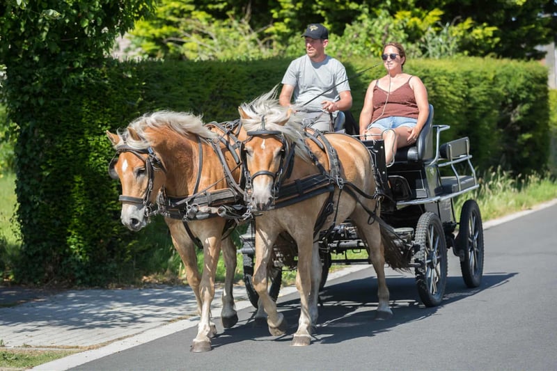 Haflinger mares for sale – Stardust van ’t Vossenhol (3 years) (right in the carriage) and Shadow van 't Vossenhol (3 years) Born: 20/06/2022 Height: 1.51m and 1.47m • Sire: Liz Spielberg • Training & experience: • Ridden under saddle, both with and on a lunge halter. Both have jumped a little bit at a basic level, but not high due to their age. • They are familiar with our obstacle course. • Both have been on trail rides and on treks. • Good with the farrier and always kept up to date with vaccinations. • They work together in a pair for the carriage. • Character: Affectionate, sweet, calm, and willing – a reliable partner for various disciplines. Versatile young Haflingers ready to grow together, both under saddle and for the carriage. Not suitable for beginner riders or drivers due to their age. Interested? Feel free to contact us for more information or to arrange a viewing. You can also send a WhatsApp for more videos under saddle or in the carriage. They have been bred by us, so their entire history is known. Higher price range €13,000 for the pair 0495888528