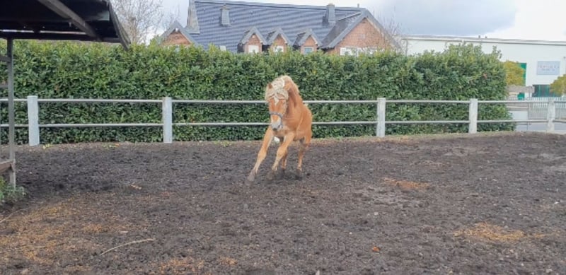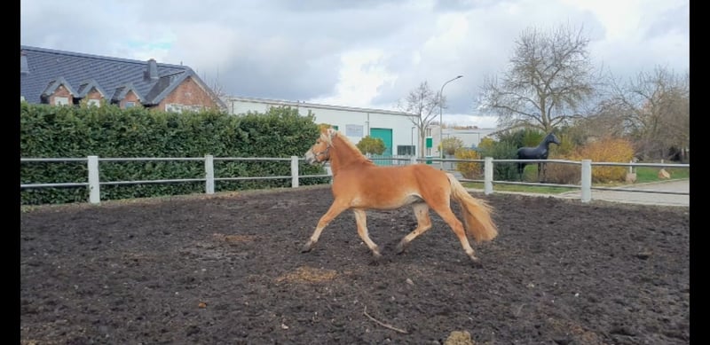Waldemar is a tall and robust Haflinger with a very athletic build. He is confidently lunged on both hands, stands calmly during mounting and dismounting, and is familiar with rider weight on the longe line at walk and trot. Due to his size, he once got his mane caught on the feed barrier in the foal stall, so we have now completely trimmed it (proof photos available ;-)). He is currently still a stallion but can be castrated before pickup if desired. You can arrange to meet Waldemar by phone at 01639129382. He is currently located in Jülich.