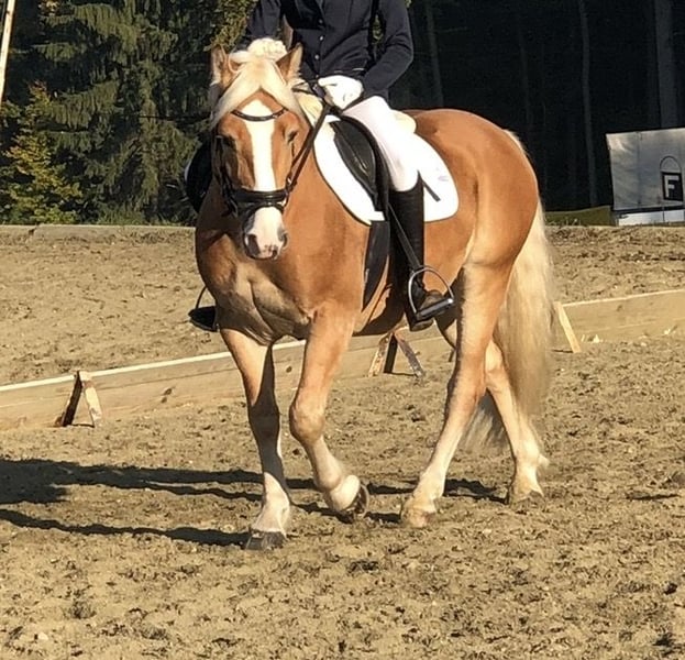 Schweren Herzens verkaufen wir unseren geliebten Haflingerwallach aufgrund des Umstiegs auf ein Großpferd. Er ist ein sehr liebes und braves Pferd im täglichen Umgang und stets freundlich im Handling. Natürlich hat auch er - wie jedes Pferd - seine kleinen Eigenheiten, insgesamt ist er jedoch unkompliziert und zuverlässig. Unter dem Sattel zeigt er sich lernwillig. Er ist bereits mehrere Turniere gegangen und konnte in der Dressur Noten über 7,0 bis hin zum Lizenzniveau erreichen. Auch im Springen wurde er vorgestellt (bis ca. 90 cm). Wir wünschen uns für ihn ein nettes, pferdeerfahrenes Mädchen oder eine liebevolle Reiterin, die gerne weiter mit ihm lernen, Spaß haben und eventuell auch Turniere starten möchte. Er wird ausschließlich in einen absoluten Bestplatz abgegeben. Keine Händler/ Schulbetrieb/Therapie!!