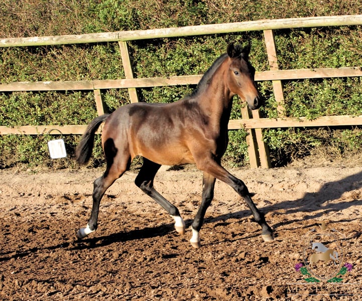 His sire is the Fully Approved Hanoverian stallion, DON AQUI, who was licensed at the Main Hanoverian Stallion Licensing in Verden in October 2000. He passed his 30 day test in Zweibrücken scoring two 9s for his jumping. In 2002 he was very successful in Material/Young Dressage Horse Classes, along with being placed in the Young Showjumping Horse Classes. He then went on to start his eventing career under Jan Büsch by qualifying for the Bundeschampionate in the 5 Year Old Eventing Championship. He qualified for the finals where he was placed 10th!! In the official Hanoverian magazine "DER HANNOVERANER" is stated: "Scene applause und enthusiastic whistling received for Don Aqui v. Don Bosco/Gardeulan (Z.: H. Heineking, Raddestorf) with Jan Büsch in the final. But the judges assessed the round differently. The black proved a consistently good manner and leg technique in front at the jump and showed an energetic canter." DON AQUI has sired numerous sport horses across all three disciplines showing how versatile his stock are and given his limited breedings, also shows what a great disposition he has for producing top quality sport horses. You can find out more here on his own web page- https://www.mfsstudfarm.com/mfs-don-aqui.html Dam of this fabulous colt is the KWPN bred mare WINDEKIND. This exceptional mare has been a proven breeding mare here at the Studfarm for several years. Continually producing Premium and Elite Premium awarded foals by top studbooks of the KWPN and the Oldenburg Verband. She is dam to several competition horses, MFS HUGO BOSS v Belstaff, MFS VOGUE v Valderde, the 1.30m showjumping gelding MFS CASINO ROYAL and MFS NEVERLAND. MFS NEVERLAND was in the top three placed 6 year olds at the British Dressage National Championships in 2024. In 2025 he once again qualified for the Finals of the 7 Year Old Championship, where he was placed 6th overall under his new rider, the Irish Olympic rider, Abi Lyle. The new partnership are now contesting Advanced Medium level dressage. Windekind is by the top sire, SIR SINCLAIR out of a FERRO mare. Sir Sinclair is one of the most prolific sires of FEI dressage horses worldwide. He was ranked the #1 USEF Dressage Sire for six consecutive years, 2015-2020, and has been in the top five ever since. He was awarded the prestigious Keur predicate by the KWPN for his excellence as a sire. He has sired numerous Grand Prix horses, including Dee Clair, Caymus, Cantata, Con Brio SDF, Zuperman, William, Air Marshall, Warina, Westerstorm and Zania. He also has dozens of sons and daughters competing at the FEI level around the world. He is the sire of one Approved stallion and two licensed sons, as well as numerous Sport, Preferent, Elite, Keur and Star offspring. Other impressive titles earned by Sir’s offspring include first place in CDI3* Grand Prix classes, numerous USDF Horse of the Year and USDF All Breeds Horse of the Year Awards at FEI level, GAIG/USDF Regional Championships, KWPN-NA North American Championships, and so much more. This fabulous dark brown colt is very reasonably priced due to the fact we expect him to mature to around 16.1hh. He is so much personality, three correct gaits and with his bloodlines. He will make a fantastic sports horse in the right hands and we know he will excel in any discipline. https://www.mfsstudfarm.com/mfsstudfarmforsale.html