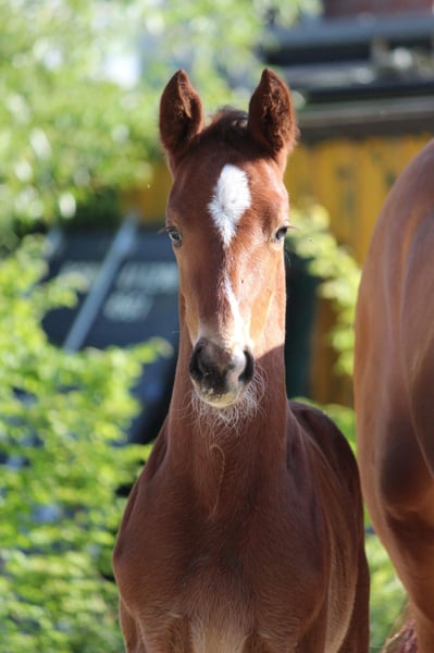 Elwood is a beautiful HF who was born on 25.04.2024. This smart Hanoverian is by Estobar NRW out of a state premium mare by Lauries Crusador × Wolkenstein. Final height approx. 172-174cm. He is a well-balanced and charming foal who is already halter trained. Sire: Estobar NRW by Ehrentusch Dam: by Lauries Crusador × Wolkenstein Estobar NRW has won the National Riding Horse Championships three times with Escolar and Equitaris I. His 10 licensed sons include Escolar, his full brother Escorial and Equitaris I and II. More than 23 Estobar NRW offspring have already achieved success up to advanced (S) level. Estobar NRW also knows how to shine as a dam's sire: His daughter Evita produced the AC/DC son "About You", who was sold for 1.65 million euros in the summer of 2020. The sons and daughters of Estobar NRW not only carry on the popular blood of Ehrentusch; they are also in the tradition of the mare line 218, named the most successful dressage-oriented mare line in the world by the Dutch breeding magazine Sport Horse Breeding. Price on request! He is located in 31311 Uetze/Dedenhausen.