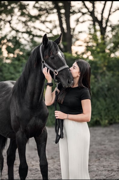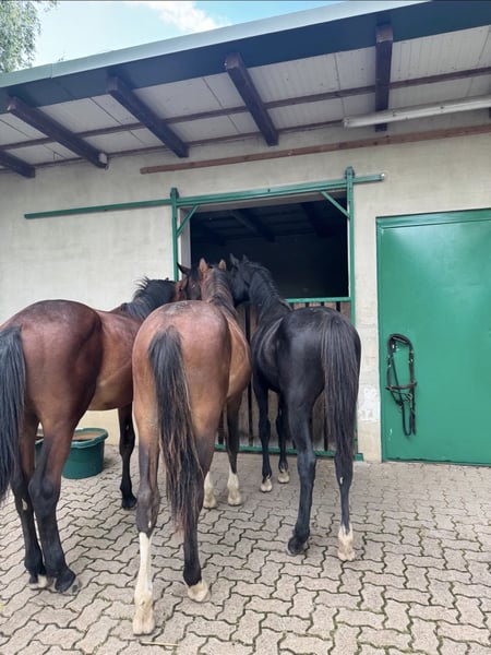 Schweres Herzens gebe ich mein Jungpferd ab. (06/2024) Er ist bei uns seitdem er ein halbes Jahr alt ist, steht in einer kleinen Herde, und ist sehr personenbezogen. Aktuell noch Rappe, wird jedoch mal Schimmel. Der kleine kennt natürlich Halfter und den Hufbearbeiter. Er ist regelmäßig (alle 3 Monate) entwurmt worden und geimpft. Auch bekommt er, seitdem er bei uns ist, regelmäßig Fohlen/Jungpferdefutter als Zusatz. Nur in die besten Hände! Abstammung Diacontinus x Ludwigs As