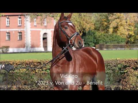 Vidalgo *2023 v. Von und Zu - Benefit Mutter: Ballerina v. Benefit Exterieurbeurteilung: 8,0 Großmutter: Flittchen v. Fidertanz Stutenstamm der Notlage Mutterstamm: Dressurpferde: gek. Hengst Rohniro v. Roh Magic (DRE: S** mit Mirja Block,MS-Handorf 2007); v. Roh Magic (DRE: S* mit Claire ABEL); Flower Power 41 v. Fidertanz (DRE: L); Ragazzo 32 v. Rubinstein I (DRE: Grand Prix mit Höfler,Jürgen,Dressurprüfung - Grand Prix 2005,Dressurprüfung - Grand Prix Special 2004,Dressurprüfung - Grand Prix 2003); Sargon 9 v. Show Star (DRE: S*** mit Anke Unger); v. Rimskij Korsakov (DRE: S** mit Tor FENWICK); VbPr Primadonna/Primadonna 75 v. Don Primero (DRE: S* mit Theresa Wahler); Desert Doll v. Desert Moon (DRE: L); Redrock C v. Rockwell (DRE: L)
