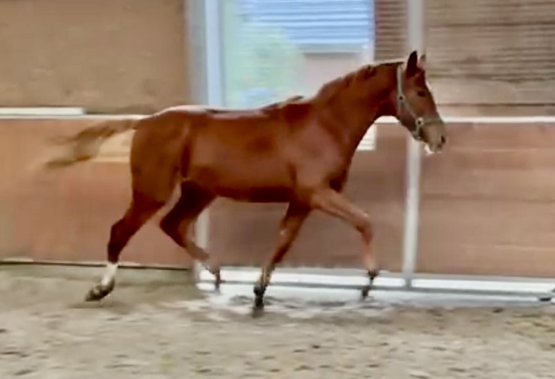 Vidar son straight out of a picture book. An absolute eye-catcher. Correct with well-developed joints, "knee action", active hind leg Type and the right "shot" of Arabian blood through the dam line. Sire Vidar already successful in dressage up to S*** The dam is a premium mare Trakehner, Hanover, Arabian Association with good SLP Her dam Camar Qalifa ox is an elite mare, GP Trakehner, has a licensed son and 3 award-winning daughters! A young stallion who will be equally interesting for licensing and sport.