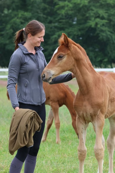 Vidar son straight out of a picture book. An absolute eye-catcher. Correct with well-developed joints, "knee action", active hind leg Type and the right "shot" of Arabian blood through the dam line. Sire Vidar already successful in dressage up to S*** The dam is a premium mare Trakehner, Hanover, Arabian Association with good SLP Her dam Camar Qalifa ox is an elite mare, GP Trakehner, has a licensed son and 3 award-winning daughters! A young stallion who will be equally interesting for licensing and sport.