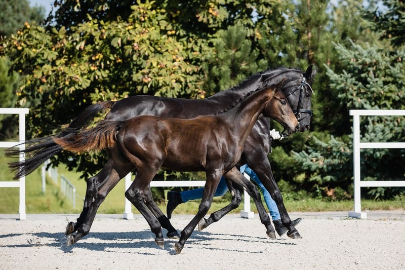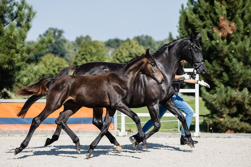 Despacito is a very typey, radiantly beautiful, and strong colt by fabulous Dynamic Dream to whom he bears extreme resemblance, and from great Hanoverian mare Diva Gora. His type, building, and foundation are great, his leg conformation is also correct. He beautifully engages his hind end. His nature is so ingenious, he is incredibly trusting and people-oriented, like all offspring from this mare. His pedigree includes many legends of dressage horses, such as his father, Westphalian stallion Dynamic Dream (won licensing in Westphalia, received premium scores 9.0s for trot and canter, 10.0s for willingness to perform, temperament, and character in Denmark), Don Federico, and Florestan. He will be able to compete on high level in dressage contests.
