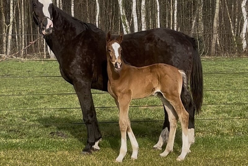 Tolles Hengstfohlen aus Leistungsstute! Ich verkaufe mein im Februar geborenes Hengstfohlen von Sherlock van‘t Huka x Ramiro’s Bube. Die Mutter dieses jungen Mannes war selbst hoch erfolgreich im Sport bis zur schweren Klasse mit einer Amateurin und wurde vom Hannoveraner Verband als Leistungsstute ausgezeichnet. (S.letzes Bild)