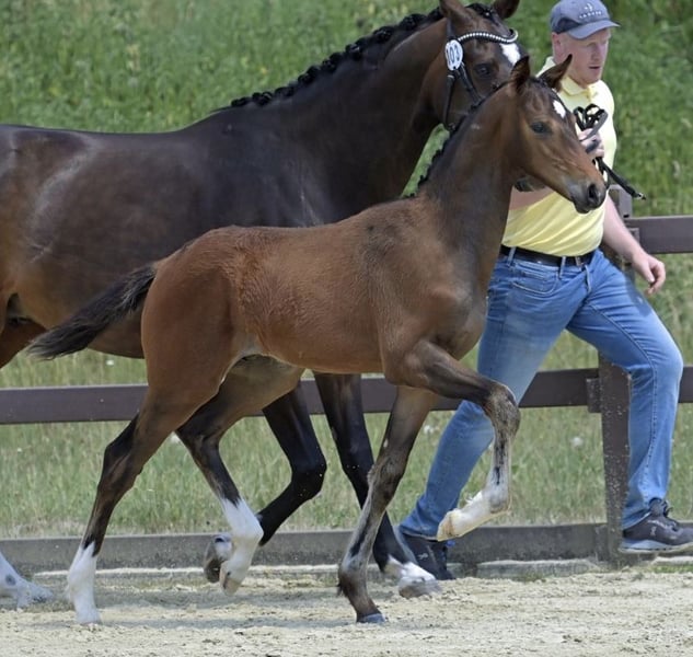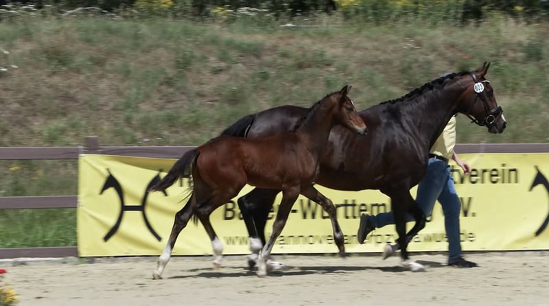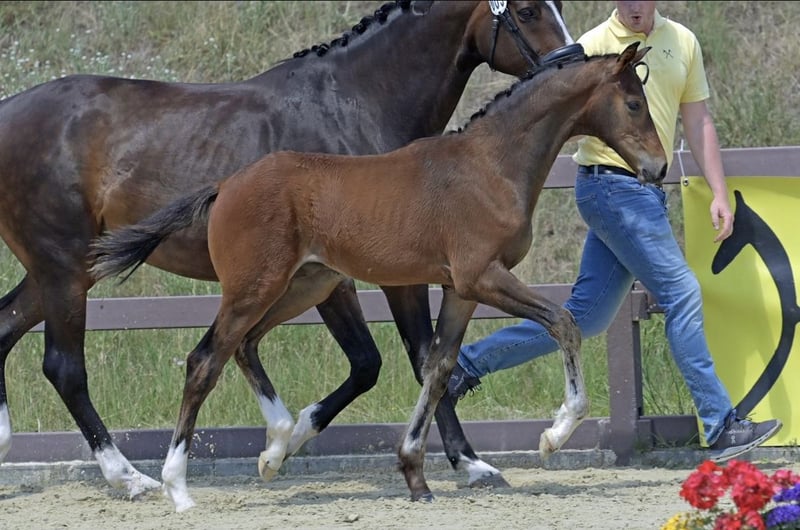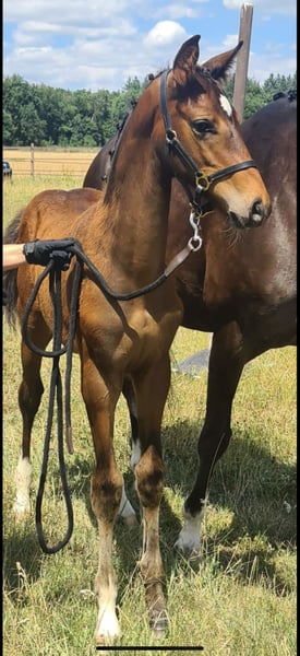 Zum Verkauf steht ein vielversprechendes Hannoveraner Hengstfohlen, geboren im Jahr 2025. Dieser elegante Braune zeichnet sich durch seine hervorragenden Bewegungen und seine Abstammung aus, was ihn besonders für den Dressursport prädestiniert. Unser Hengst überzeugt nicht nur durch seine elegante Aufmachung, sondern auch durch seinen freundlichen Charakter. Seine Bewegungsqualität lässt auf ein großes Potenzial für die Dressurausbildung und als späteres Reitpferd hoffen. Aktuell 24/7 Koppel, Versorgung mit Mineralien/Fohlenfutter sowie regelmäßige Entwurmung und Hufschmied sind selbstverständlich). Mutterstute: Frieda Freitagskind (Freddie Mercury x Sugunas xx) * Stutenstamm: 1190207 Schönheit - Quast, Neuenfelde (Jork) M ZL 3/3 - Feldprüfung Reitpferd - Trab 7,00 Galopp 6,50 Schritt 7,50 Durchschnitt Grundgangarten 7,00 / Durchschnitt Rittigkeit 8,00 / Durchschnitt Springen 6,50 M TL DPF: A 1/1. RPF: ohne Klasse 1/1. 3/2. 1/3. 1/4. 1/5. Bei Interesse oder für weitere Informationen stehe ich Ihnen gerne zur Verfügung. Besichtigung nach Vereinbarung möglich. Wir freuen uns auf Ihre Nachricht!