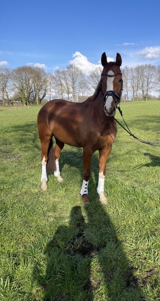 Delani (Dancier x Rotspon) ist eine hübsche, 161 cm große Hannoveraner Fuchsstute mit einem tollen Gangbild. Sie ist 2016 geboren, schmied- und verladefromm und selbstverständlich regelmäßig entwurmt. Sie wurde regulär geritten (A-Niveau), stand jedoch das letzte Jahr überwiegend und braucht daher eine erfahrene, einfühlsame Hand, die sie ruhig und konsequent zurück ins Training führt. Auf Turnieren habe ich sie nicht vorstellen können. Corona und unsere beiden Mädels, die sich auf den Weg gemacht haben, ließen es nicht zu. Delani verfügt über Go und ist deshalb nicht für Anfänger geeignet. Wir suchen nach einem passenden neuen Besitzer mit Gefühl, Geduld und Pferdeverstand. Mit der richtigen Person zeigt sie Potenzial, Lernfreude und schöne Bewegungen. Delani bringt eine Basis mit, auf der in der Blüte ihres Lebens angeknöpft und aufgebaut werden kann. Sie ist noch sehr unverbraucht und ist sowohl für den anspruchsvolleren Freizeitreiter als auch fürs Turnier geeignet. Delani wird nur in fördernde, sensible und zuverlässige Hände abgegeben, wo sie Zeit und eine klare Struktur bekommt. Bei ernsthaftem Interesse freue ich mich über eine Nachricht und ein persönliches Kennenlernen.