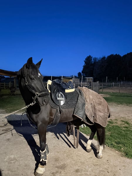 Yegua de doma classica de raza hannoveriana con unos buenos movimientos para la disciplina. Yegua ya pisetada fuera de casa y lista para emezar la temporada 26 en recordidos de doma classica a nivel territorial y nacional. Tambien saltando facil hasta 1,10cm i recoridos a 80/90cm. No solo destaca por su belleza y movimientos sino tambien por su buen linaje com nombres en si carta como De Niro - Dancier - Donnerhall entre otros. Responde muy bien a las ayudas y aprende rapido en el mundo de la doma. Tiene ejercicios mas complejos como cambios de mano simple, piruetas (paso/galope), apoyos pendientes de confirmar. Ejercicios confirmados espalda dentro, grupa debtro, espalda fuera, cesiones, transiciones parada-trote, torte-parada, paso-galope y viceversa. Se disponen de videos y mas informacion. NO LLAMADAS!