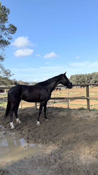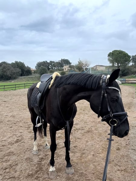 Mula da dressage classica di razza Hannoveriana con ottimi movimenti ideali per la disciplina. Già avviata in competizione fuori casa e pronta per iniziare la stagione 2026 con record di dressage a livello territoriale e nazionale. Saltando facilmente fino a 1,10 m e percorsi a 80/90 cm. Non solo si distingue per la sua bellezza e i movimenti eleganti, ma anche per un buon pedigree che include nomi come De Niro, Dancier, Donnerhall, tra gli altri. Risponde molto bene alle ausili ed è rapida ad apprendere nel mondo della dressage. Esegue esercizi più complessi come cambi di mano semplici, pirouette (passo/galope), appoggi pendenti da confermare. Esercizi già confermati: schiena in dentro, grupa dietro, schiena fuori, cessioni, transizioni fermo-trotto, trotto-fermato, passo-galoppo e viceversa. Disponibili video e ulteriori informazioni. NO CHIAMATE!