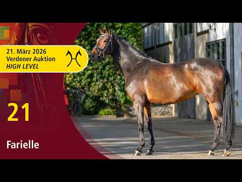 Ein weiteres S-erfolgreiches Pferd aus dem Taunus ist Farielle. Die 10-jährige Stute mit ihrem weiblichen Charme ist im mittleren Rahmen angelegt und verfügt zugleich über ausreichend Größe. Zu ihr passen daher eher zierliche Reitertypen. Hervorzuheben ist Farielles großzügiger Trabablauf, der in puncto Tragkraft, energischem Abfußen, Übersetzung und Versammlungsmöglichkeit besticht. Dadurch macht sie sich unter dem Reiter groß und gibt ein sehr harmonisches Seitenbild ab. Nach einem hocherfolgreichen Turnierjahr 2025 bekam sie etwas Pause, hat selbstverständlich aber nichts von ihrer Lektionssicherheit und einfachen Bedienbarkeit verlernt, die ihre Reiterin Ann-Christin Feix vielfach demonstrieren konnte. Farielle wird Teil der Verdener High Level Auktion, da die Inhaberfamilie des Gestüts Tannenhof den Umfang an fortgeschritten ausgebildeten Reitpferden etwas reduzieren möchte und gleichzeitig die Ausbildung ihrer Pferde unter optimalen Rahmenbedingungen bis zum Auktionstag weiterführen möchte. Sportname: Farielle 7 Sporterfolge: RPF: 1/2 DRE (Dressur) Klasse M1 (DRP-M): 1/w Klasse M1 (Dre M*): 1/1; 2/4; 1/w Klasse S1: 1/2; 1/4; 1/5; 1/w Klasse S1 (Dre S*): 1/1; 3/3; 1/5 DPF (Dressurpferdeprüfung) Klasse A (Dpf A): 1/2; 1/3; 1/4 Klasse L (Dpf L): 1/4 Leistungsprüfung: Feldprüfung Reitpferd - Trab 8,00 Galopp 7,50 Schritt 8,50 / Durchschnitt Rittigkeit 8,25 / Durchschnitt Springen 6,00 1. Generation Sportpferde Dressur: London Flair 3 v. London Swing (DRE: S* mit Ann-Christin Feix,Championat f. Reitpferde 2018). 2. Generation Sportpferde Dressur: Late twenty eight v. Lemony's Nicket (DRE: Grand Prix mit Andreas Elsbecker,Dressurprüfung Kl. S*** - Grand Prix Kür - 2024,Dressurprüfung Kl.S*** mit Piaffe und Passage 2023); Rockford Dreams v. Rocky Lee (DRE: S** mit Jannik Leutiger); Rockland Dreams/Rushmore Dreams v. Rocco Granata (DRE: S* mit David Leßnig); StPr Dance With Me v. Davignon I (DRE: S mit Mormann,Hiltrud); Caya 21 v. Carabas (DRE: M** mit Lena Waldmann). Sportpferde Springen: Quintana/Quintana S v. Quidams Rubin (SPR: 1,50 m mit Heidi Leonor BÄR SALVAT,VA 2011); Casalou v. Casallco (SPR: 1,35 m mit Constanze Pape); Cadillac Jack 3 v. Cantoblanco (SPR: 1,35 m mit Tanja Fuhrer); Lissy/Lissy 625 v. Lissaro (SPR: 1,30 m mit Emily Greshake); StPrA Quick Queen v. Quidams Rubin (SPR: 1,30 m mit Ulf Geißel,VA 2009). Aufbauprüfungen Dressur: Flying Colours B v. Rousseau (ex: Rambo) (DRE: M mit Kirsten Greshake); Aßla v. A Jungle Prince (DRE: L,SPR: L). Aufbauprüfungen Springen: Q'Pidou v. Quinaro (SPR: L,Gelände: L**); Aßla v. A Jungle Prince (DRE: L,SPR: L). Aufbauprüfungen Gelände: Q'Pidou v. Quinaro (SPR: L,Gelände: L**). gekörte Hengste: gek. Hengst Saltimbanco/Saltimbanco 3 v. Sandro Hit (MS-Handorf 2003). Auktionspferde: Culture Club v. Caytens (FoVA 2021). Bes. Prämientöchter: StPrA Filigrana/Filigrana B v. Rousseau (ex: Rambo); StPr Melinda/Melinda B v. Münchhausen. 3. Generation Sportpferde Dressur: Sundancer 36 v. Sungold (DRE: S** mit Carmen Wolf-Stephany); HannPrA Marah/Millenniums Little Lady v. Millennium (DRE: S* mit Lena Backes); Eric 101 v. Escolar (DRE: S* mit Hermann Burger). Sportpferde Springen: Caspari 29 v. Cardenio (SPR: 1,50 m mit Jörg Peper); Lord Fountleroy v. Limes (SPR: 1,40 m mit Raishun Burch). Aufbauprüfungen Dressur: Zehntausend Volt B v. Zoom (DRE: L); StPr Prima Wera/Prima Wera 2 v. Prince Thatch (DRE: L). Aufbauprüfungen Springen: Caspara 5 v. Cardenio (SPR: L). gekörte Hengste: gek. Hengst Da Vinci Dream M v. Diamond Hit (Redefin 2018); gek. Hengst Ransom PCH/v. Regazzoni v. Regazzoni (Verden 1999,HM 1999). Auktionspferde: Sunny Dream v. Sénégal de Fontaine (FoVA 2025); Avenue Sunrise v. Ampere (NLD) (VA 2021,VA 2019). Bes. Prämientöchter: StPr Lucy v. Londonderry. 4. Generation Sportpferde Dressur: Caroline/CASSANDRA 6 v. Cardinal (DRE: S mit WERMKE,SABINE); CAPPUCHINO v. Cardinal (DRE: M mit GRIMPO,DAGMAR); PAPAGENO 14 v. Paladin (DRE: M mit HAMMWOEHNER,HEINZ). Auktionspferde: Pikante v. Pik Bube II (VA 1986). Bes. Prämientöchter: VbPr Pik Pikkola/Pik Pikkola v. Pik Bube II. 5. Generation Sportpferde Dressur: HannPrA In my Heart V v. Instertanz V (DRE: S** mit Stephanie Leuenberger-Voss,Dressurpferdeprfg. Kl.S -Bundeschampionat 7 jährige 2025); Montepulciano OLD v. Morricone I (DRE: S** mit Malte Kalus); Dorincourt 6 v. Damsey (DRE: S** mit Melanie Tewes); Red diamond v. Rotspon (DRE: S* mit Nikola Mock); Sekt 14 v. Scuderia (DRE: M** mit Emilia Schwark); Heureka/Heureka 25 v. Herzensdieb (DRE: M** mit Melanie Tewes); DelViano v. Del Piero (DRE: M** mit Anja Schneider); DelMondo 7 v. Del Piero (DRE: M* mit Victoria Eckermann); HannPrA Helmi/Helmi 3 v. Herzensdieb (DRE: M* mit Melanie Tewes,Herwart von der Decken-Schau Verden 2014); Petit Romantique v. Rosso di Sera (DRE: M* mit Nele Walther); Rouben 2 v. Rosso di Sera (DRE: M* mit Kathrin Wiedermann); Arrak 70 v. Almansor (DRE: M mit Smital,Petra). Sportpferde Springen: Cosmic 16 v. Cassus (SPR: int. 1,30 m mit Leslie Beilken); Loli Pop v. Landjäger G (SPR: 1,40 m mit Philipp Lyck-John); Stako T v. Stakkato (SPR: 1,30 m mit Kirsten Kudlek); Lucie Lou 2 v. Landor S (SPR: 1,30 m mit Georg Wahlers); Classic/Classic 19 v. Calypso II (SPR: M mit Klöpper,Anja); gek. Hengst Gabriel/GABRIEL 13 v. Gepard (SPR: M mit STEINDL,JOHANN,); Talismann 52 v. Trapper (SPR: M mit JUBIN,OLIVER); Gibertus 2 v. Gong (SPR: M mit Marziniak,Detlef 1308). Aufbauprüfungen Dressur: Bella Ciao/Bella Ciao 24 v. Bonds (DRE: M mit Melanie Tewes); Snow 42 v. Sir Heinrich (DRE: M mit Michael Bühl); Saina B/Sandia 6 v. Scuderia (DRE: M mit Ana Teresa Pires); Be my friend 11 v. Bonds (DRE: L); In Heaven V. v. Isterberg V (DRE: L); HannPrA Falihondra v. Falihandro (DRE: L); Daperola v. Da Costa (DRE: L); Luccido v. Lauries Crusador (DRE: L); Rising Sun 69 v. Rotspon (DRE: L). Aufbauprüfungen Springen: Leynes 2 v. Landsdown (SPR: L). gekörte Hengste: gek. Hengst Confess Color/v. Ca