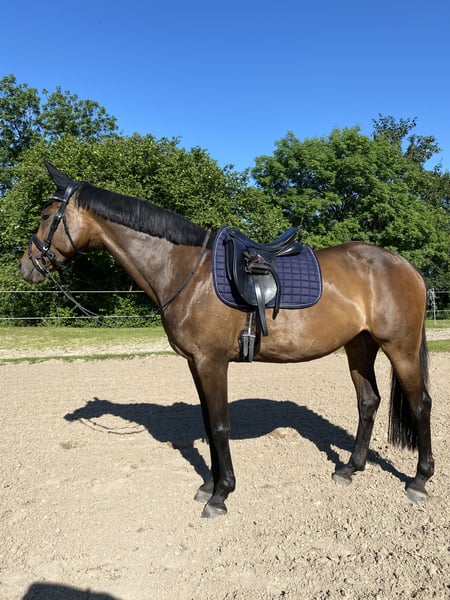 Bei ernsthaftem Interesse bitte Nachricht mit Kontaktdaten sowie kurzer Beschreibung wofür das Pferd gedacht ist. Für meine 11-jährige (April 2015) „Laffaire“ genannt „Fee“ – eine Hannoveraner Stute mit guter Abstammung - suche ich ein neues, kompetentes Zuhause. Sie ist 1,65 cm groß, gesund, regelmäßig geimpft, entwurmt und barhuf unterwegs. Sie ist schmiede- und verladefromm. Fee ist eine Stute mit viel Sensibilität und Ausdruck und braucht einen erfahrenen Reiter, der ihr Sicherheit vermittelt. Sie zeigt keine Unarten wie Buckeln, Beißen oder Steigen, allerdings kann sie in für sich stressigen Situationen schreckhaft reagieren (kein Durchgehen aber innerer Stress und dann keine Losgelassenheit) und benötigt einen ruhigen, ihr Sicherheit vermittelnden Reiter. Fee wurde bei mir freizeitmäßig auf dem Platz gearbeitet und ins Gelände geritten - auch einen einzelnen Sprung macht sie, dieses wurde aber nicht weiter gefördert. Ins Gelände geht sie in der Gruppe brav – alleine auf bekannten Wegen klappt auch. Bodenarbeit macht sie gut mit und bringt ihr auch Spaß. Sie ist ein Pferd mit viel Ausdauer und könnte daher auch gut für Distanzritte geeignet sein. Sie benötigt viel Auslauf und ist bei mir tagsüber auf der Weide und nachts in der Box (dieses sollte ihr neues Zuhause auch mitbringen) – ich könnte sie mir aber auch in einem Offenstall vorstellen. Fee war bei mir nie krank und es liegt eine kleine AKU von der Vorbesitzerin aus 2022 vor. Fee bringt eine gute Abstammung mit, die sie für die Zucht interessant macht. Für jemanden, der ein sensibles, typvolles Pferd mit guter Herkunft sucht, könnte sie eine Ergänzung sein. Fee bringt Trense und Gamaschen etc. mit – Sättel (Dressur und Springen) können übernommen werden. Für wen Fee geeignet ist: -Jemand der Erfahrung mit sensiblen, blütigen Pferden hat – kein Anfängerpferd -Freude an feiner Kommunikation und Weiterentwicklung hat -Sicherheit ausstrahlt und klare, ruhige Hilfen gibt -Eventuell auch Zuchtinteresse hat -Ein Pferd sucht, welches mit Vertrauen zu einer Partnerin wird Es gilt definitiv Platz vor Preis