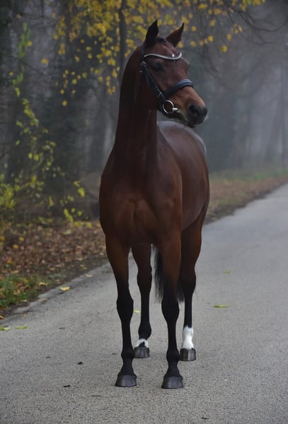 Elegant Hanoverian mare for sale – perfect for dressage! Up for sale is a stunning dark bay Hanoverian mare, born in 2015. Standing at 16.1 hh, she combines graceful appearance with impressive size. She is ideally suited for dressage and demonstrates great talent and a strong willingness to learn. This reliable and friendly partner impresses with her solid basic training and pleasant demeanor. She is healthy, regularly vaccinated, and presents herself beautifully. If you are interested or would like more information, I am happy to assist. A personal meeting is highly recommended!