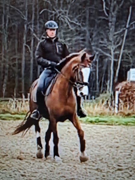 For sale: a 10-year-old mare by Danone I out of Abanos. The horse is easy to ride, light in the hand, moves effortlessly in balance, and is comfortable to sit. She can be ridden with a regular snaffle or a bit and bridle. She is also traffic-proof and enjoys rides in the forest. At the age of 4, she foaled a foal by So Unique. She has competed a few times but not extensively, and is very easy to handle at competitions, not spooky. She is also very easy to transport. Due to her diet, it should be taken into account that she is sensitive to too much sugar and starch.