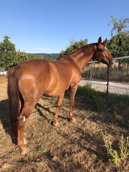 Hannovers Fuchs Stute Nicht für Kinder/Anfänger/Reitschule geeignet. Läuft Barhuf als Freizeit Pferd. Nach erfolgreicher Vertrauensarbeit geht sie auch allein ins Gelände. Kann nach Aufbau Training auch nochmal das ein oder andere Turnier gehen. Ich sehe sie, mangels Motivation, aber nicht im großen Sport. Sie braucht nachts Box. Reine Offenstallhaltung mag sie nicht. Muss wieder angeschoben werden, wird aktuell nur sporadisch bewegt. Passender Sattel kann mit verkauft werden. Auch als Zuchtstute interessant, sie ist ein Ebenbild des Vaters. Gynäkologische Voruntersuchung bereits erfolgreich durchgeführt, dem Decken steht nichts im Wege. Empfohlen wurde von Deckstation Ludger Beerbaum der Hengst Zinedine. Alterstypischer Verschleiß der Gelenke, evtl. Spat. Aktuelle Röntgenbilder vorliegend. Es können auf eigenen Wunsch und Rechnung angefertigt werden.