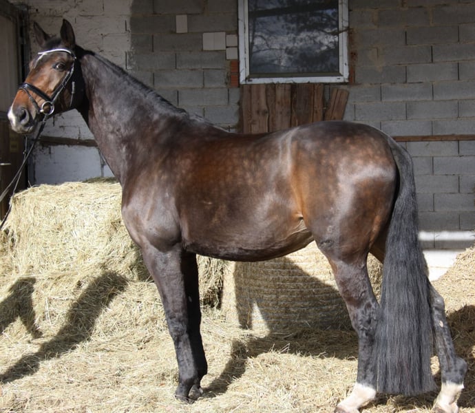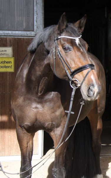 Lehrmeisterin mit Herz und Format – sichere Wechsel, Piaffe & Passage, absolut brav im Umgang Zum Verkauf steht eine großrahmige, elegante Dressurstute mit hervorragendem Charakter und bestem Ausbildungstand. Sie ist ein ideales Lehrpferd für ambitionierte Reiterinnen und Reiter, die Lektionen sicher erlernen, festigen oder verfeinern möchten. Die Stute verfügt über: sichere fliegende Wechsel gut abrufbare Piaffe ausbalancierte Passage sehr angenehmen, bequem zu sitzenden Bewegungsablauf Durch ihren großzügigen Rahmen ist sie auch für größere Reiter bestens geeignet. Sie vermittelt jederzeit ein sicheres Reitgefühl und überzeugt durch ihre Rittigkeit sowohl auf Trense als auch auf Kandare. Im täglichen Umgang zeigt sie sich ausgesprochen brav, freundlich und menschenbezogen. Sie ist verschmust, klar im Kopf und unkompliziert im Handling – sowohl beim Putzen als auch beim Verladen oder Schmied. Aktuelle Röntgenbilder liegen vor. Ein kleiner Schönheitsfehler am Fuß ist vorhanden, beeinträchtigt sie jedoch nicht in ihrer Nutzung. Weitere Informationen, Videos und Details gerne im persönlichen Gespräch. Kontakt bitte telefonisch unter 0171 6287936 bei ernsthaftem Interesse.