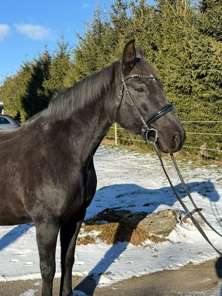 Resi, eine wunderschöne Hannoveranerin in schwarzer Jacke, kam vor 6 Jahren zu mir. Damals war ich 11 Jahr alt und sofort schockverliebt und total begeistert, von dieser tollen Maus. Resi ist eine sehr motivierte, feine Stute, die immer alles Recht machen möchte. Schnell haben wir uns aneinander gewöhnt und sind auf unseren ersten Turnieren gestartet. 2020 haben wir E-Dressur mit 9,0 gewonnen, darauf folgten mehrere A-Platzierungen. 2021 sind wir sehr erfolgreich auf A-Niveau unterwegs gewesen, sammelten unsere ersten Erfahrungen in L-Dressur. Bei den Baden-Württembergischen Meisterschaften in Meissenheim errieten wir uns den 4. Platz. 2022 bin ich mit Resi nur noch wenig auf dem Turnier gewesen, da ich da schon andere Pferde zu Reiten hatte. Aufgrund Ihrer sehr guten Abstammung (direkte Rotspon Tochter), haben wir 2023 angefangen mit Ihr zu züchten. 2024 hat Resi uns eine wunderschöne Tochter von "Rock for me" geschenkt und letztes Jahr (2025) hatte sie einen wunderschönen Hengst von "Diamantenglanz" bei Fuß. Resi hat immer beim ersten besamen aufgenommen und die Geburten verliefen ohne Komplikationen. Sie war immer eine fürsorgliche und liebevolle Mutter. Nach dem Absetzen im Oktober 2025 haben wir wieder begonnen schonend mit ihr zu Arbeiten. Sie ist nach wie vor hoch motiviert und fleißig bei der Arbeit. Sie kennt Stangenarbeit und Cavaletti Training, geht gerne ins Gelände und ist auch bei der Bodenarbeit motiviert dabei. Resi hat im Dezember 2025 beim Zahnarzt und beim Chiropraktiker. Sie ist vollständig, turniermäßig, geimpft, wurde immer regelmäßig entwurmt und den Schmied hat sie auch immer alle 6-8 Wochen gesehen. Sie lebt bei uns in einer Stutenherde mit täglichem Auslauf auf der Weide oder auf dem Paddock, nachts in der Box. Während sie Fohlen bei Fuß hatte, lebte sie in der Zuchtherde im Offenstall oder 24/7 auf der Weide. Natürlich wünschen wir uns ein 10* Zuhause für sie, wichtig ist mir, das sie einen Menschen hat, der für sie da ist und sich Zeit für sie nimmt. Sie braucht eine artgerechte Haltung und genügend Auslauf an der frischen Luft mit Artgenossen. Aufgrund Ihrer Größe ist sie kein Gewichtsträger, braucht aber einen feinen Reiter, der schon unabhängig mit der Hand ist. Sie hat noch nie irgendwelche Schweinereien, wie bocken oder steigen gezeigt, hat auch keine "Hobbies". Für ein Kennenlernen mit Probe Reiten wird eine Gebühr in Höhe von 25 Euro in bar fällig.