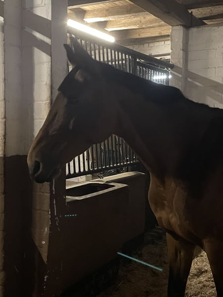 C'est la vie es una yegua preciosa, amable y muy sociable, de la línea de Chacco Blue. Chacco Blue, ya una leyenda, sorprendió deportivamente al obtener el tercer puesto en el Gran Premio de Aachen, siendo hijo de Chambertin. La yegua en sí no es "demasiado grande", pero al comprarla en otoño de 2022, he visto su descendencia y considero que todos son lo suficientemente grandes o lo serán pronto. El 9 de mayo de 2025, dio a luz a una cría muy simpática, con tipo y marcado carácter, por Ogano Sitte (Darco x Avontuur) (ver anuncio separado). Mi potro de 2024, también de esta yegua y de Jasper, es igualmente grande. La yegua se adapta muy bien a la inseminación (solo una vez en 2023, 2024 y 2025, y cada año quedó preñada de inmediato). Lamentablemente, este año sufrió una reabsorción, pero, en mi opinión, esto no se debe a la yegua en sí, sino a otras razones. Estaré encantado de dar más detalles en una conversación. C'est la vie, cuando era joven, sufrió una lesión en la vértebra cervical, por lo que solo tuvo una corta carrera deportiva. Ella misma ha sido colocada hasta la categoría M*. Durante el invierno, permanece en un paddock cubierto y bien equipado durante todo el día, con comederos de heno, y por la noche en su box. En verano, está en un prado con una manada de yeguas, siendo de rango relativamente bajo en la jerarquía.