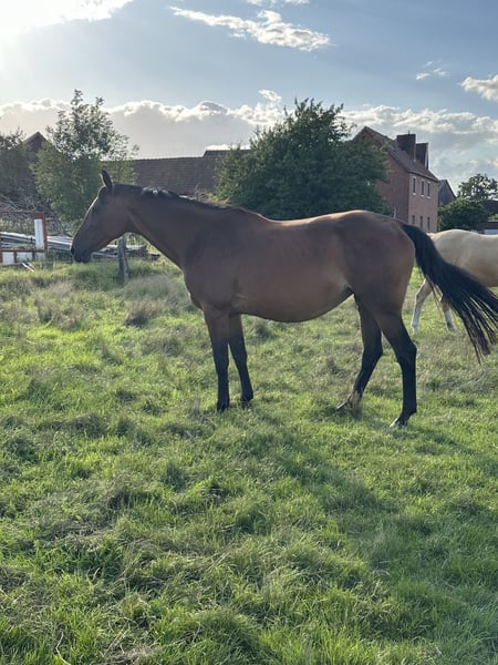 C'est la vie ist eine bildschöne, liebe und menschenbezogene Stute von Chacco Blue. Chacco Blue, schon jetzt eine Legende, mit dem 3. Platz im großen Preis von Aachen sorgte der Sohn des Chambertin sportlich für Aufsehen. Die Stute selbst ist zwar "nicht zu groß", ich habe mir aber beim Kauf im Herbst 2022 ihre Nachzucht angesehen und bin der Ansicht, dass alle "groß genug" sind bzw. werden. Die Stute hat am 09.05.2025 ein sympathisches, typvolles und toll gezeichnetes SF von Ogano Sitte (Darco x Avontuur) zur Welt gebracht (siehe gesonderte Anzeige). Mein Fohlen aus dem Jahr 2024 aus dieser Stute von Jasper ist ebenfalls groß. Die Stute nimmt sehr gut auf (jeweils nur 1x besamt in 2023, 2024 und 2025 + war jedes Jahr sofort tragend). Leider hat sie in diesem Jahr resorbiert, was aber m.E. nicht an der Stute selbst lag, sondern auf andere Gründe zurück zuführen ist. Näheres dazu gern im Gespräch. C'est la vie ist bis M* platziert. Sie wurde allerdings bereits 7- oder 8-jährig vom Vorbesitzer verletzungsbedingt aus dem Sport genommen und zur Zucht eingesetzt. Die Stute steht im Winter in der Gruppe ganztägig auf einen befestigten Paddock mit Heuraufen und nachts in der Box. Im Sommer ist sie auf der Wiese mit einer Stutenherde, sie ist eher rangniedrig.