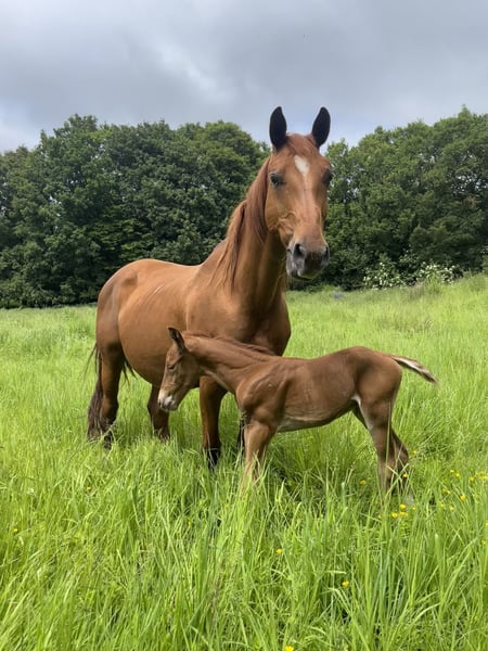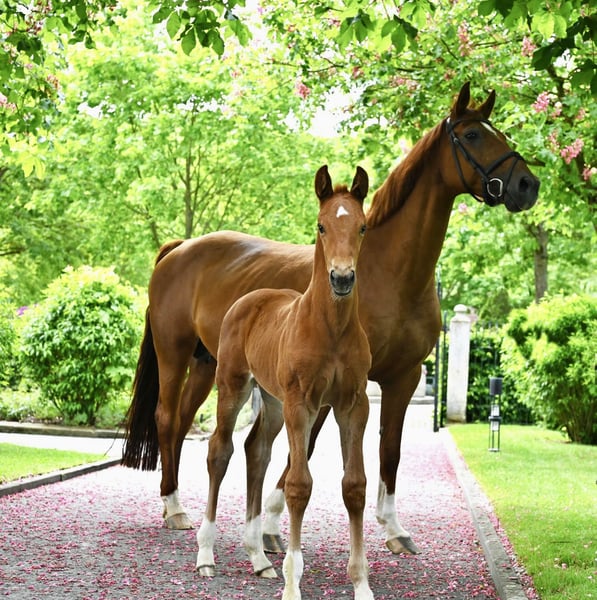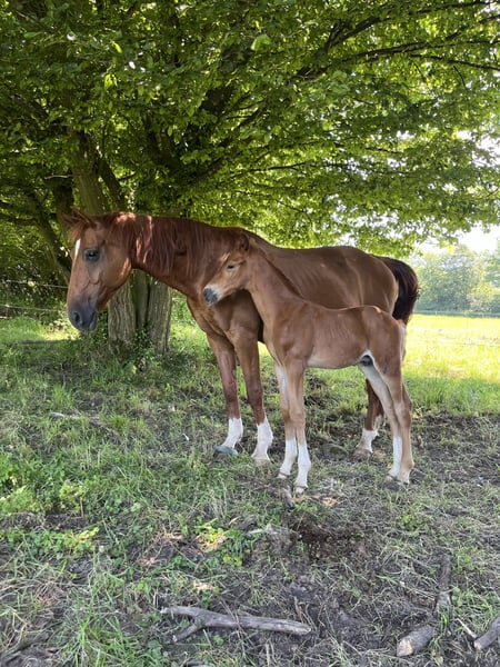 It is with a heavy heart that we part with our affectionate and proven broodmare Rubina, born in 2010. Rubina combines the outstanding bloodlines of Rotspon and Matcho AA and has already given us impressive offspring who are successful in dressage up to advanced level. Rubina is currently in foal to Vital Hit OLD, a talented dark chestnut stallion who impresses with his strong type, quality of movement and elegant appearance. Vital Hit OLD has quickly made a name for himself in dressage sport: 2022: Oldenburg State Champion of 3-year-old stallions; qualified for the Bundeschampionat with high scores in basic gaits and rideability. In 2022 he passed the short VA test and in January 2023 the sport test in Münster, both with scores well above 8.0. In 2023, he was victorious in novice class dressage tests for young horses with top scores (up to 8.7) and qualified for the World Championships for Young Dressage Horses in Ermelo, where he excelled in the small final with 84.2 %. Vital Hit OLD is descended from the renowned Vitalis, who became famous as the reserve winner of the NRW licensing and produced numerous licensed sons as well as champion stallions and Bundeschampions. His dam Loretta Live belongs to one of the world's most influential mare lines, as a full sister to Royal Hit and half-sister to the important stallions Diamond Hit and Sandro Hit. Rubina is an experienced, caring mother with a calm and balanced nature. Her bond with people and her excellent character make her an ideal broodmare and companion. Her previous foals by Vital Hit OLD have great dressage potential and also impress with their rideability and willingness to perform. Rubina offers a rare opportunity for ambitious breeders who value performance, quality and character. She will only be sold to experienced, loving hands. We look forward to hearing from you for further information and viewing appointments! E-mail: richard.tschrepp@gmail.com Whatsapp: 0049 162 2377375 Phone: 0049 160 5298297
