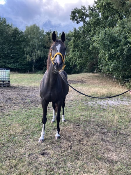 16-year-old main studbook mare for sale, in foal by Faber Castell, due to a reduction in breeding. The mare was ridden at a young age. Very well-mannered in handling.