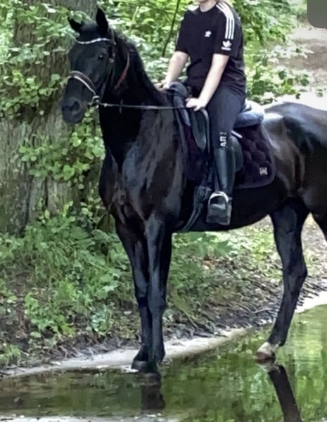 PRICE UPON REQUEST!!!! The figures listed are not the actual price! Feel free to contact me directly. After much careful and heartfelt consideration, I have made the difficult decision to part with my beloved mare. She is a Hanoverian mare, born in 2009, with an exceptional character, impressive presence, and great potential – both in dressage and jumping. Originally bred for dressage, she is sensitive, motivated, and eager under saddle. At the same time, she loves jumping above all else and demonstrates genuine joy, courage, and ability in this discipline as well. There is still plenty of room for development in both areas. In handling, she is a truly trustworthy horse – honest, well-behaved, and completely reliable. Whether in the field alone or in a group, she remains calm and takes everything in stride. She’s a horse that enjoys fun, offers trust, and always strives to please her handler. 🥰 In addition to her excellent riding qualities, she has also been used as a broodmare and has fulfilled this role with equal dedication and heart. Her offspring impress with strong character, movement, and willingness to perform, which is why I can also see her future in breeding very well. She is a horse that simply has to be loved – with a big heart, lots of expression, and a soul that touches. She is only available to the best, loving hands where she will be nurtured and appreciated. If you are genuinely interested, I look forward to hearing from you and arranging a personal meeting.