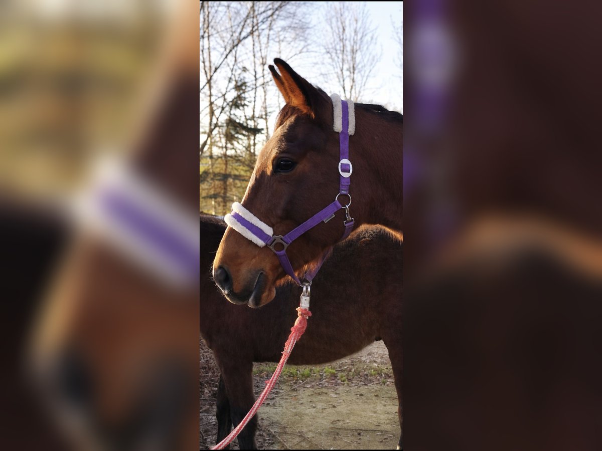 Wenn alles passt würde ich meine 18 jährige Stute in liebevolle Hände abgeben. Sie wurde eingeritten und legte seine gute SLP und ging dann in die Zucht. Sie besitzt 3 tolle Gangarten und gehört noch lange nicht zum alten Eisen. Beim letzten Fohlen hatte Sie jetzt jedoch sehr abgebaut, was mich dazu veranlasst hat, sie nicht mehr decken zu lassen. Ein weiteres Reitpferd benötige ich jedoch nicht. Da sie sehr fit ist und gern eine Aufgabe hätte, finde ich es falsch sie einfach stehen zu lassen. Deswegen habe ich mich entschlossen ihr wenn alles passt ein neues Zuhause als Freizeitpferd zu suchen. Wichtig wäre jedoch keine Boxenhaltung sondern nur Offenstall oder Paddocktrail. Sie hatte bei den Vorbesitzern gewebt. Dieses Verhalten zeigt sie hier um Alltag jedoch nicht. Sie ist umgänglich und hat keine Unarten. Bei der Hufbearbeitung steht sie vorbildlich und lässt sich in jeder Situation ganz einfach händeln. Aktuell wird sie wieder an die Arbeit heran geführt.
