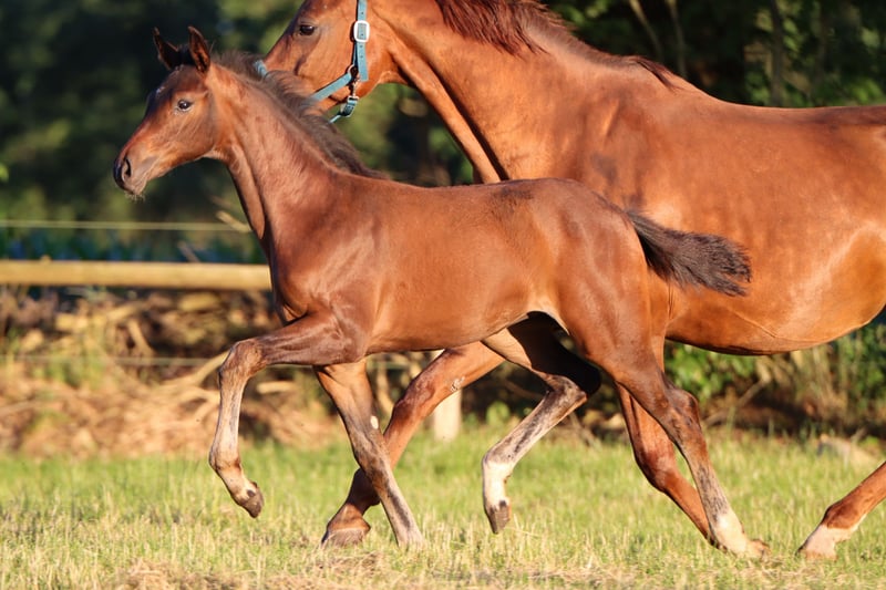 Exceptional filly with a promising pedigree, showing a friendly, curious, and open demeanor in daily handling. She already impresses with three above-average basic gaits. Her correct conformation and friendly, open character make her a true prospect for the future in dressage. She is healthy, well-developed, and is growing up in a species-appropriate environment. Her sire, St. Emilion, is a modern, high-performance Oldenburg premium stallion with an international pedigree, excellent basic gaits, and high breeding value. He represents the highest dressage quality and is already setting standards in breeding and sport. He captivates with elegance, rhythm, and impulsion, as well as a first-class pedigree that leaves nothing to be desired. St. Emilion is considered exceptionally rideable, eager to perform, and cooperative. He impresses with a natural uphill tendency, energetic take-off, and relaxation. The dam is by Don Frederico and was herself successful up to L-level dressage, further emphasizing the athletic quality of this foal. For any questions, please feel free to contact us by phone or WhatsApp at 0173/6048021.