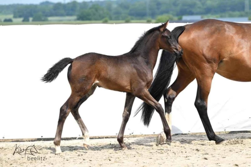 "Nalegra" ist ein Typvolles Stutfohlen von Nalegro. Nalegro selbst ist in den letzten beiden Jahren im Finale der Jungpferde WM mit Charlotte Fry gestanden und schickt sich an in den großen Sport zu kommen. Sein Vater ist Painted Black vom Garibaldi der ebenfalls Siegreich auf FEI 5 Sterne Niveau war. Mütterlich geht Nalegro auf den kürzlich verstorbenen Weltklasse Vererber Negro zurück. Nalegra 's Mutter ist eine Herbstkönig x Don Primero Tochter. Sie hat nach ca 10 Wochen unter dem Sattel ihre SLP im Schnitt mit 8-8,5 Noten absolviert bevor sie bei uns in die Zucht gegangen ist. Ggf. wäre auch ein Tausch mit einer Dressur gezogenen Stute (am liebsten tragend) möglich. Eine weitere Aufzucht wäre bei uns möglich. Gern können Sie sich im Internet unter www.hannoveranerzucht-pickbrenner.de ein kleinen Eindruck unserer Hobbyzucht machen.