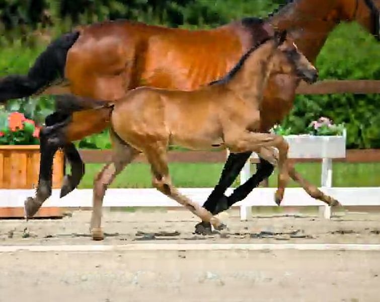 Ta przepiękna, czarna klaczka urodzona z pełnym wdziękiem zachwyca wyjątkowym galopem: mocnym, przestrzennym i z aktywnym końcem podparcia pod środkiem ciężkości. Ze względu na swoją niezwykłą jakość została dopuszczona do aukcji foalów Hannoveraner – jest to wyraźny dowód jej hodowlanej i sportowej perspektywy. Ruchliwa, wyrazista i o prostym usposobieniu. Ogierka pochodzi od czystej pełnej krwi konia wyścigowego Rock of Romance xx – prawdziwa rzadkość we współczesnej hodowli koni typu warmblood. To wyjątkowe pochodzenie łączy wysoką wydajność, elegancję i wszechstronne predyspozycje na najwyższym poziomie. Jesteśmy przekonani, że ta obiecująca klacz nadaje się do różnych dyscyplin jeździeckich – przy odpowiednich ambicjach także do wyczynowego sportu. Z przyjemnością udostępniamy więcej informacji i chętnie zaprezentujemy konia osobiście! Zapraszamy do kontaktu, także przez WhatsApp: +49 176 55323449.