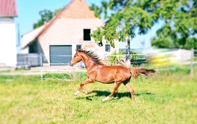 ¡Potranca de salto nacida en abril de 2024! Esta yegua de un año está especialmente bien lograda. Tiene una cabeza hermosa, una mirada atenta y despierta, excelentes movimientos y una mecánica muy bonita y elegante. Saltar es algo que saben hacer sus padres y abuelos. Un toque de sangre en el pedigree aporta el fuego en el corazón de esta hermosa dama. Su padre, Devil 2000 Z, encarna la esencia del atleta moderno y muestra sorprendentes similitudes con su fenomenal padre, Dominator 2000 Z. Desde el primer momento, nos fascinó con su imponente presencia, su impresionante capacidad y su estilo ágil y ligero. Su madre, China Touch Hero, también es la madre de Sea Coast Don't Touch Tiji Hero, el padre de nuestro superestrella Dourkhan Hero Z. Vemos a esta deportiva dama compitiendo más tarde en salto, así como en la doma clásica. Esperamos su contacto para un encuentro personal con Domina ZPF.