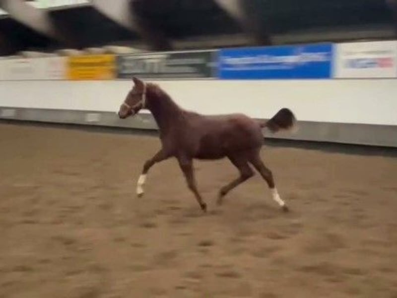 Dieses feine, farbenfrohe Stutfohlen überzeugt mit seinen raumgreifenden Grundgangarten und einer erstklassigen Dressurveranlagung, was es für die eigene Aufzucht äußerst interessant macht. Die junge Stute befindet sich voll in der Entwicklung und ist kerngesund. Ihr Charakter ist aufgeweckt, freundlich, charmant und neugierig. Sie eignet sich ideal für Reiter, die ein vielversprechendes, talentiertes Nachwuchspferd suchen, um es selbst zu formen. Direkt vom Züchter, in hervorragendem Futterzustand, geimpft, entwurmt und gechippt – wir laden Sie herzlich ein, dieses zauberhafte Pferd persönlich kennenzulernen! Der Vater dieses Fohlens ist der zweifache Weltmeister der jungen Dressurpferde, Kjento, der sowohl den Titel der 6- als auch der 7-jährigen Weltmeister erringen konnte! Seine Grundgangarten sind von herausragender Qualität, wobei insbesondere sein kraftvoller Trab hervorzuheben ist (Note 10,0). Darüber hinaus überzeugt Kjento mit bemerkenswerter Rittigkeit und Arbeitsfreude. Durch die Anpaarung mit diesem Hengst erwarten wir, dass sein außergewöhnliches Talent sowie seine hohe Leistungsbereitschaft auf dieses Nachwuchspferd übergehen.
