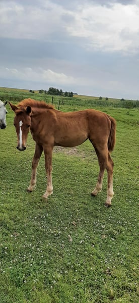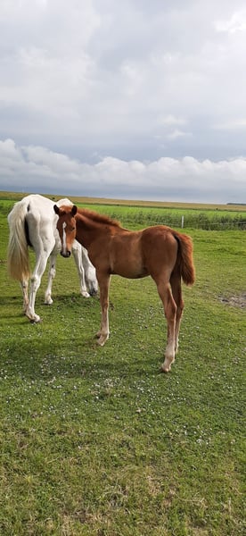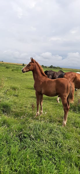 Dieses Stutfohlen ist eine Perle für den Springsport. Vater und Mutter sind aus der Zucht von Tamme Hanken, Filsum. Nachkommen sind Seriensieger in Springprüfungen. Mutter Charder´s Fürstin hat einige hochferfolgreiche Sportpferde geliefert. Siehe Color of Magic - gekörter Hengst in der USA usw.