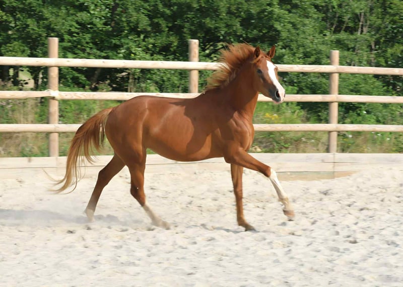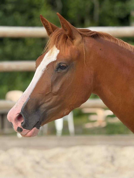 Jument alezane de 3 ans, séduit par son modèle harmonieux, son caractère doux et sa proximité avec l’homme. Issue de lignées reconnues (Bourbon, lignée Belissimo x Quaterback), elle allie chic, souplesse et puissance. Élevée en troupeau, bien manipulée, elle voyage très bien, part en balade en main et apprend avec facilité. Pas encore débourrée, elle offre la possibilité d’une mise au travail progressive. Une jeune jument prometteuse, pratique et attachante, idéale pour un cavalier recherchant sport, polyvalence et complicité.