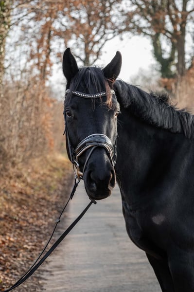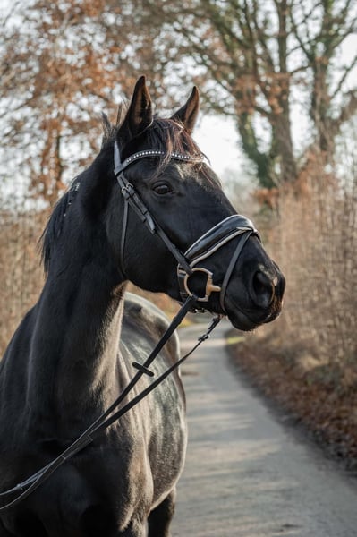 Ausdrucksstarke Dressurnachwuchsstute mit Top-Abstammung 2026 Tunier bereit Zum Verkauf steht eine großrahmige Stute mit hervorragender Perspektive für den Dressursport. Aktuell ca. 165 cm groß, altersgemäß noch im Wachstum. Die Stute befindet sich seit 5 Monaten im schonenden Beritt, wobei besonderer Wert auf solide Bodenarbeit, Gelassenheitstraining und feine Hilfengebung gelegt wurde. Sie zeigt sich dabei sehr lernbereit, aufmerksam und stets bemüht, dem Reiter zu gefallen – ein unverbrauchtes Nachwuchspferd mit bestem Charakter. Sie überzeugt durch: • Dressurbetonte Bewegungsanlage • Ausgeglichenes, entspanntes Wesen • Hohe Rittigkeit und Gelehrigkeit • Arbeitsfreude ohne Überforderung • Klaren Kopf und gute Nerven Im Umgang ist sie sehr angenehm, sozial verträglich in der Herde und stets freundlich. Sie ist barhuf, kennt sowohl Offenstall als auch Boxenhaltung und kann problemlos 24/7 auf die Weide. • Keine Unverträglichkeiten • Keine Macken • Keine bekannten gesundheitlichen Einschränkungen Eine ehrliche, talentierte Nachwuchsstute mit Top-Abstammung, die sowohl für ambitionierte Freizeitreiter als auch für den sportlich orientierten Dressurreiter beste Voraussetzungen mitbringt. Diese Stute bringt sie bereits jetzt eine beeindruckende Präsenz und Eleganz mit. Im täglichen Umgang überzeugt sie durch: • Freundliches, menschenbezogenes Wesen • Soziale Kompetenz in der Herde • Ausgeglichenheit und innere Ruhe • Große Bereitschaft zu lernen und zu gefallen Geht alleine ins Gelände mit dem Reiter und verhält sich absolut gelassen und souverän. 📍 Weitere Informationen, Videos und Kennenlernen nach ernsthafter Anfrage.