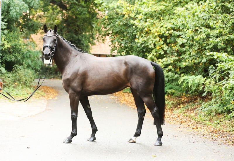 Elise is still owned by her breeder. Good X-rays + back are available. Elise was backed in autumn 2024 and has been successfully presented in dressage horse tests of class A this year. For her young age, she is already quite fearless and has no problems with new situations such as being transported, busy warm-up areas, or new environments. Her three good basic gaits combined with a comfortable basic swing leave no wishes unfulfilled for Elise as a young dressage horse.