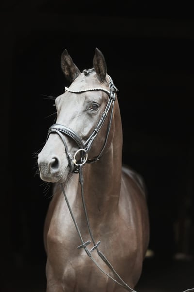 Elise is nog in het bezit van haar fokker. Goede röntgenfoto's + rug zijn aanwezig. Elise is in de herfst van 2024 onder het zadel gebracht en is dit jaar met succes gepresenteerd in dressuurpaardproeven van klasse A. Ze is voor haar jonge leeftijd al behoorlijk onbevangen, heeft geen probleem met nieuwe situaties zoals bijvoorbeeld vervoerd worden, volle losrijterreinen, nieuwe omgevingen. Haar drie goede basisgangen, gecombineerd met een zitcomfortabele basisdraf, maken Elise als jong dressuurpaard tot een wensvervuller.