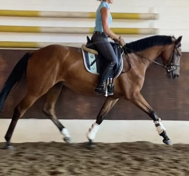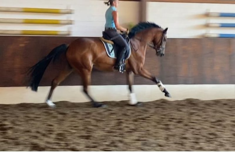 Verkaufe elegante Hannoveraner Stute – Perfekt für Dressur! Zum Verkauf steht eine wunderschöne braune Hannoveraner Stute, geboren im Jahr 2022. Mit einem Stockmaß von 166 cm vereint sie Größe und Anmut. Sie ist ideal für den Dressursport und zeigt viel Talent sowie Lernbereitschaft. Die Stute ist gesund, gut angeritten und besitzt ein freundliches Wesen. Ein echtes Schmuckstück für ambitionierte Reiterinnen und Reiter, die eine zuverlässige Partnerin suchen. Aktuell wird sie aufgrund von Zeitmangel nicht geritten. Videos unter dem Sattel können verschickt werden. Daher ist ein ausprobieren nicht möglich. Bei Interesse oder für weitere Informationen stehe ich Ihnen gerne zur Verfügung!