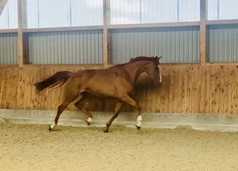 For sale is a talented Hanoverian mare, born in 2021. This young lady shows potential through her good basic gaits; she is currently still untrained. The mare is well-mannered and easy to handle. She is suitable for both leisure riding and competition sports. If you are interested or need further information, please feel free to contact me.