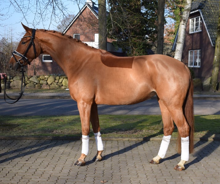 Eine athletisch aufgemachte Stute, die auf den ersten Blick zu überzeugen weiß . Sie verfügt über eine sehr gute Galoppade , raumgreifenden Schritt und eine sehr elastische Trabphase. Top rittig, immer an der Seite seines Reiters. Sie ist sehr nervenstark und sehr einfach zu reiten, deshalb auch für Kinder und Wiedereinsteiger bestens geeignet. Mehr Infos finden Sie auf unserer Homepage. Probereiten jederzeit nach Absprache möglich.