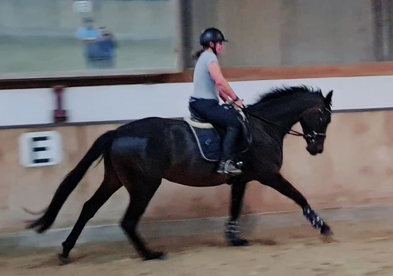 Don't wait, call or write right away! UNIQUE OPPORTUNITY!!!! On behalf of the breeder, a beautiful, light-footed mare with an excellent pedigree (Bellany x Swarovsky) and outstanding potential for dressage is offered! A highly noble and elegant dressage princess in a desirable dark coat. The mare is also very interesting for breeding. She carries top bloodlines in her pedigree (Bon Coeur, De Niro, Sandro Hit, Lauries Crusador, Raphael). The mare is 4 years old and has been started under saddle. Although she has only been under saddle for 2 months, she is well-behaved and shows no vices while being ridden! Overall, the mare is brave and fearless. She has 3 great gaits, especially the trot, which is light-footed, powerful over the back, and very elegant. She shows a very good willingness to collect! The canter is well-balanced, and the walk is ground-covering and absolutely rhythmically secure. The mare comes from a very renowned breeding establishment; she is well-socialized, raised in the best conditions, people-oriented, and easy to handle. Many great offspring come from her dam line (the breeder has also produced top prices at Hanoverian auctions!). The mare has been recently clinically examined and is in very good condition. Good X-rays are also available. She has a chip (no risk finding!!!! Fetlock joint, left hind; Birkeland chip) - otherwise, the X-rays are without abnormalities. Due to her elegant appearance and compact size (current height at withers approximately 1.68m), she is an ideal horse for ladies, juniors, or transition riders. However, due to her age and training level (started under saddle), a certain level of riding ability (license level) is required. The mare can be viewed and tried out by appointment via phone. I am available for any questions at any time. Further videos and photos can be sent upon request (also very gladly via WhatsApp) - just contact me at 0650/3537883. The TÜV can be viewed under the "Documents" section in the advertisement or I can gladly send it.