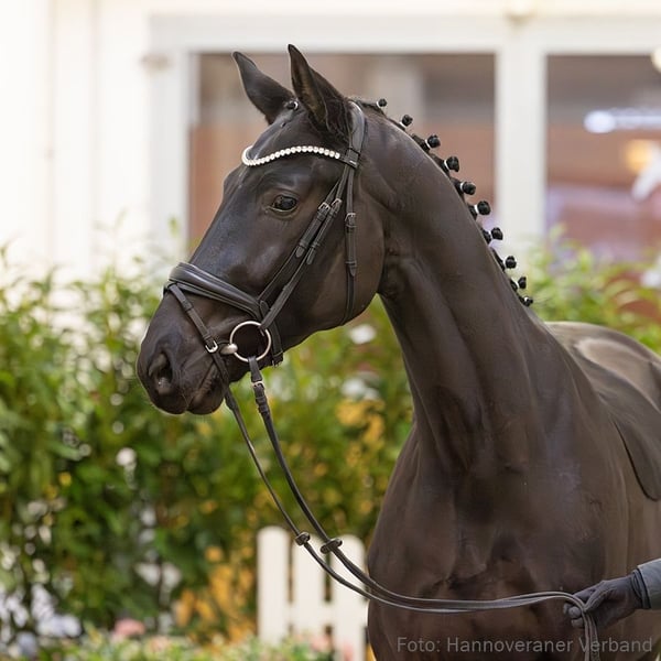 Noch jugendlich, aber bereits vielversprechend, präsentiert sich hier ein Youngster der Spitzenklasse. Despacina besticht durch schwungvolle, losgelassene Bewegungen und zeigt bereits jetzt ihr außergewöhnliches Potenzial als Dressurpferd von höchster Qualität. Mit ihrer Lernbereitschaft, der feinen Rittigkeit und dem harmonischen Bewegungsablauf legt sie den Grundstein für eine erfolgreiche sportliche Zukunft. 2. Generation Aufbauprüfungen Dressur: Dinava v. Don Romanov (DRE: L,FoVA 2019); Sorey/Silence's Sorey v. Scuderia (DRE: L). Auktionspferde: HannPrA Susi Sorglos/Susi Sorglos 13 v. Scuderia (FoVA 2015,VA 2020). Bes. Prämientöchter: HannPr Dark Pearl v. Don Romanov. 3. Generation Aufbauprüfungen Dressur: VbPr Divinita Nera v. Millennium (DRE: L); Stanleigh v. Scolari (DRE: L). Auktionspferde: Wega 323 v. Weltissimo (FoVA 2003). 4. Generation Sportpferde Dressur: Donna/Donna Grazia 2 v. Dimension (DRE: M** mit Alina Griewel,SPR: L); Diva Ballerina v. Don Nobless (DRE: M* mit Lena Braun); Honigbärchen v. Don Nobless (DRE: M* mit David Kunath); Linus SP v. Le Beau (DRE: M* mit Constance Post). Sportpferde Springen: Graziano 32 v. Gold Ferdl (SPR: M mit Hardy,Dorothea). Sportpferde Fahren: Baily 19 v. Bergamon (Fahren: S mit Falko Mäkelburg,FoVA 1999). Aufbauprüfungen Springen: VbPr Lavendel/Life is Hope v. Laureus (SPR: L). Auktionspferde: DJ 2 v. Davignon I (VA 2002). 5. Generation Sportpferde Dressur: Curry 1 v. Cordial (DRE: M mit Andre,Nicole). Auktionspferde: Cerline/Czilla v. Czardas (VA 1979); Campanula/Campanula v. Czardas (VA 1978). Mutter: Weltina ZL: 10/8 Großmutter: Silence ZL: 12/11 ZSP: Feldprüfung Reitpferd - Trab 7,00 Galopp 6,50 Schritt 7,00 / Durchschnitt Rittigkeit 6,75 / Durchschnitt Springen 6,50 Das Pferd ist ein Verdener Auktionspferd und wird am 25.01.2026 online versteigert. Vom 12.01. bis zum 25.01. kann das Pferd jeden Tag beim öffentlichen Training besichtigt und ausprobiert werden. Das Startgebot bei der Versteigerung ist 8.000 Euro.